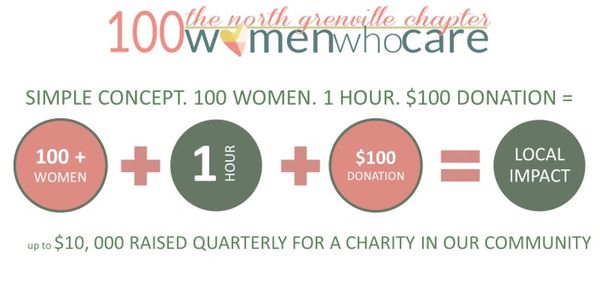 100 women + 1 hour meeting @ 4 times per year + $100 quarterly donation each = over $10,000 donated quarterly to the community which you serve!